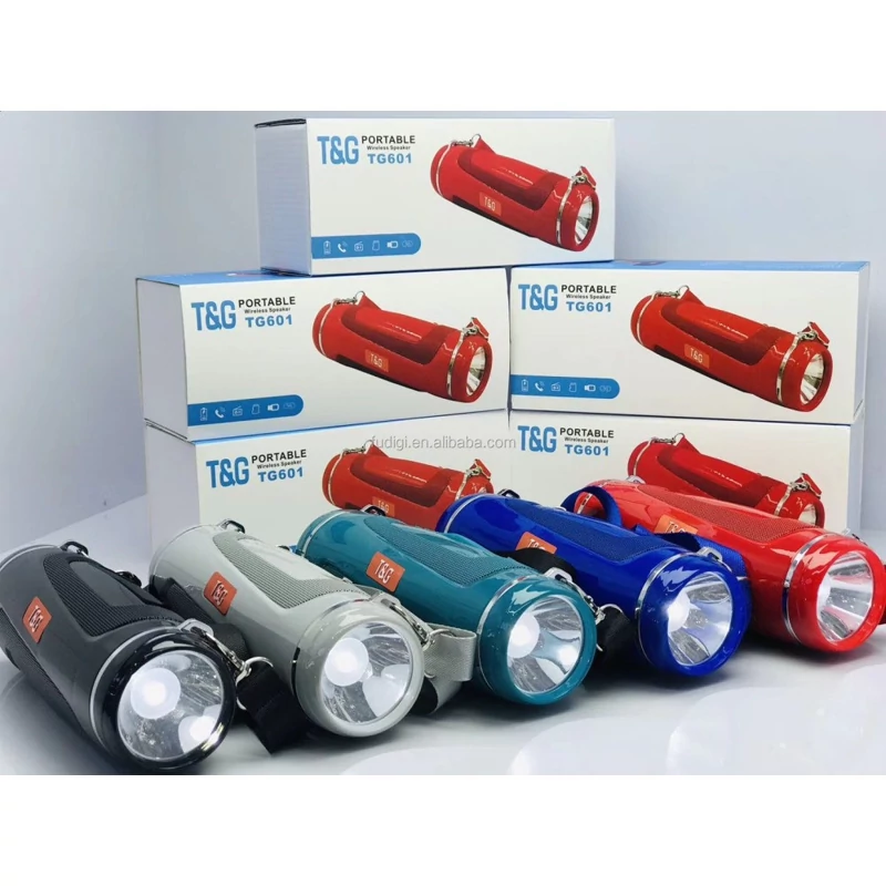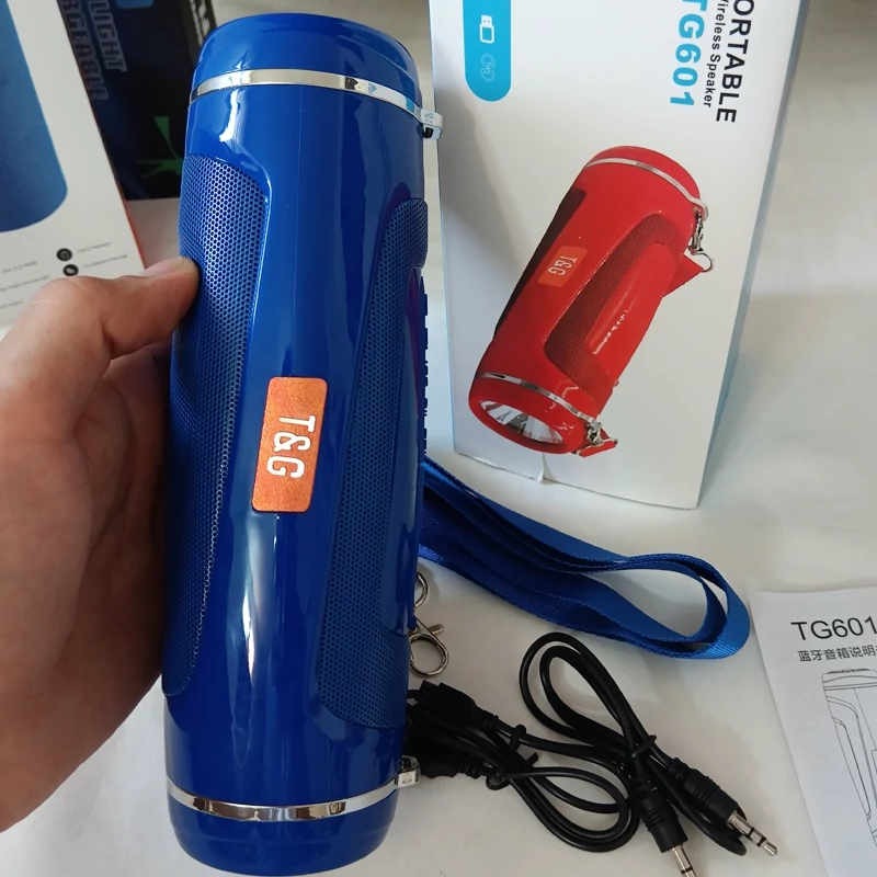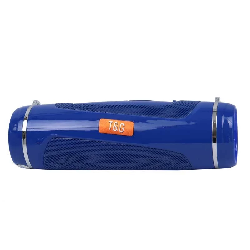 اسپیکر بلوتوثی رم و فلش خور TG601 یکی از محصولات شرکت T&G می باشد که امکان لذت بردن از موسیقی را در تفریح ها و گردش ها برای شما فراهم می کند. قسمت جلویی این محصول میزبان درایو های آن می باشد که توسط یک توری فلزی مورد محافظت قرار گرفته اند. کلیدهای کنترل موسیقی، پورت های اتصال و دو عدد گیره جهت اتصال بند در قسمت بالایی اسپیکر TG601 می باشد که دسترسی سریع و راحت شما را به آن ها موجب می شود. شرکت T&G از یک چراغ قوه در قسمت راست این محصول بهره برده تا امکان استفاده از آن به عنوان چراغ قوه برای شما ممکن شود. درایو های ۴۵ میلی متری اسپیکر T&G امکان ارائه توان ۵ وات را در محدوده فرکانس ۱۲۰ هرتز الی ۲۰ کیلوهرتز را دارا می باشند. حساسیت صدای این درایو ها به نویز در حداکثر توان آن ها به ۹۵ دسی بل می رسد تا این اسپیکر وضوح صدای نسبتا مناسبی را به شما ارائه کند اتصال بی سیم این محصول به حافظه جانبی و گجت های شما توسط پورت های اتصال USB، شیار کارت حافظه و پورت AUX انجام می شود. بلوتوث داخلی این دستگاه نیز امکان اتصال به انواع گجت بلوتوثی را برای شما فراهم می کند که از قابلیت TWS به خوبی پشتیبانی می کند. اسپیکر TG601 از قابلیت مکالمه صوتی نیز پشتیبانی می کند که ویژگی بسیار مناسبی برای یک اسپیکر بلوتوثی به شمار می آید. منابع انرژی اسپیکر بلوتوثی رم و فلش خور شرکت T&G بر عهده باتری ۱۲۰۰ میلی آمپری آن می باشد. این باتری قابلیت شارژ مجدد از طریق پورت میکرو یو اس بی را دارا بوده و شارژدهی مناسبی نسبت به بلندی صدای درایو ها به شما ارائه می کند.